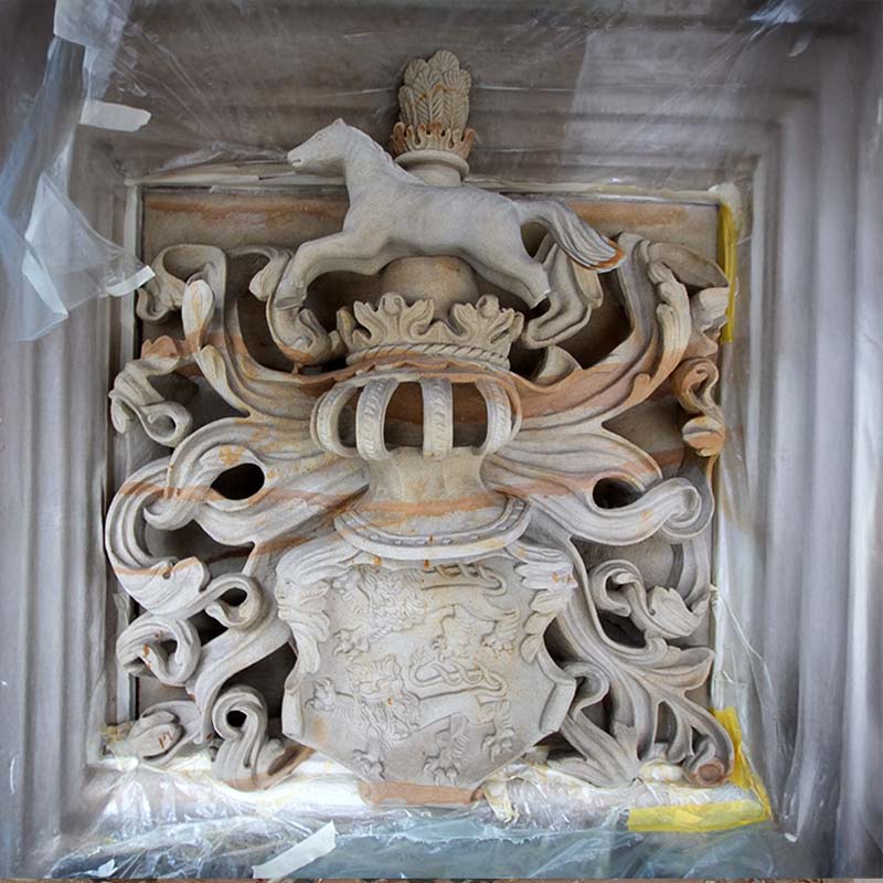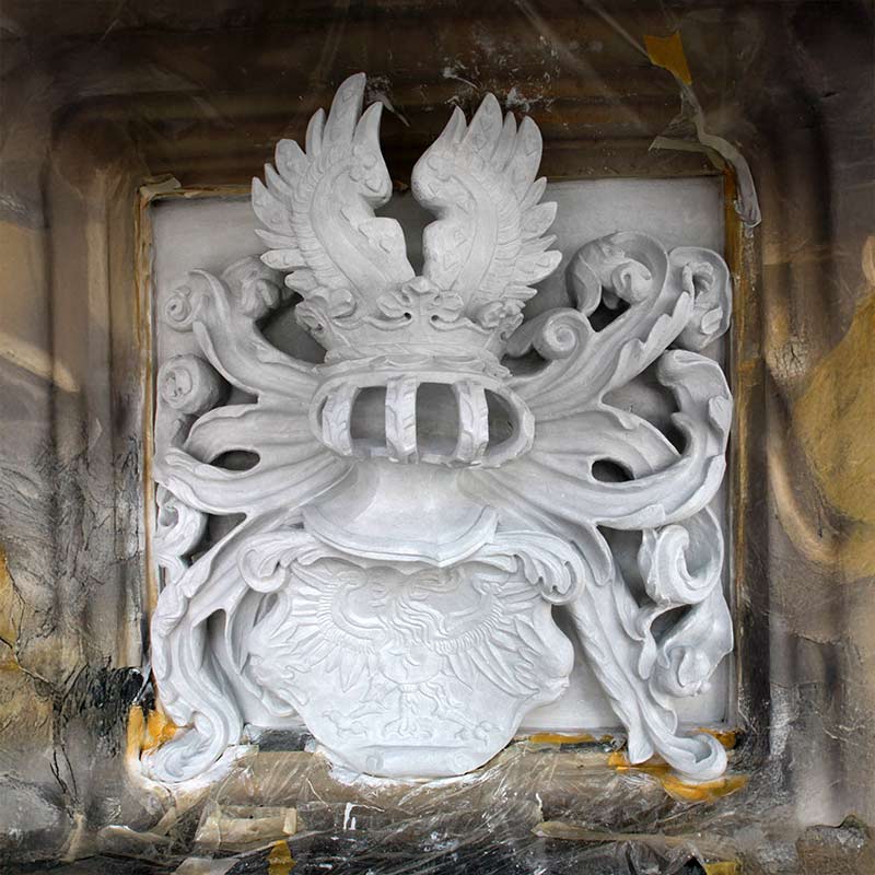 Der Große Wendelstein von Schloss Hartenfels in Torgau zählt zu den Hauptwerken der Deutschen Renaissance. Nach einer umfassenden Restaurierung der Natursteinsubstanz in den 1990er Jahren erfolgte im Jahr 2014 die Ausführung einer Neufassung des gesamten Wendelsteins. Teil dieser Maßnahmen war auch die Rekonstruktion der originalen polychromen Farbigkeit der Wappengalerie. Diese wurde in Standölfarben mit Firma Kreidezeit mit einem insgesamt siebenschichtigen Fassungsaufbau ausgeführt. Vergoldungen und Versilberungen wurden abschließend gelüstert und mit Lasuren akzentuiert.